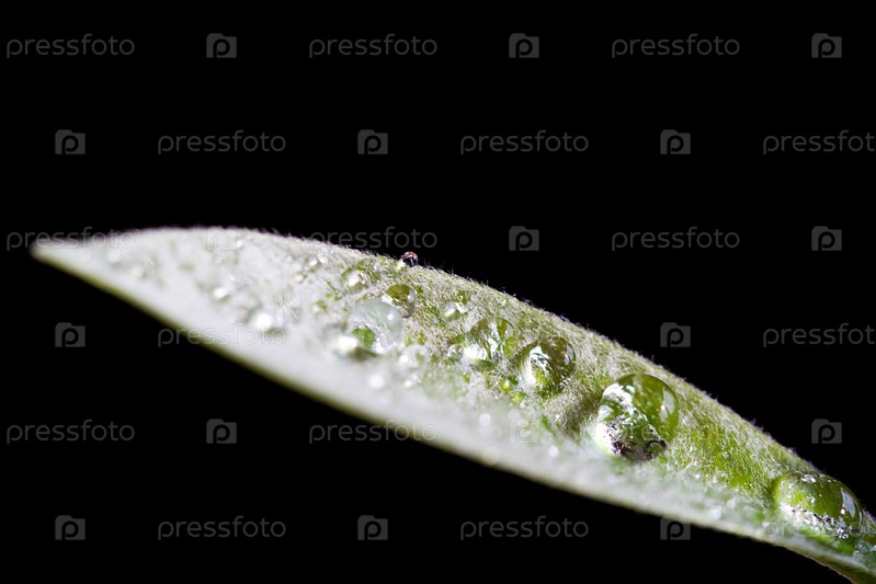 Лист с каплями на черном фоне