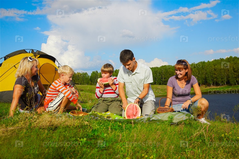Дети и взрослые отдыхают на пикнике