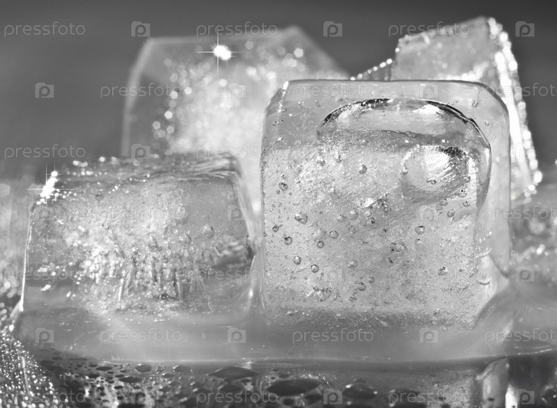 Кубики льда на сером фоне