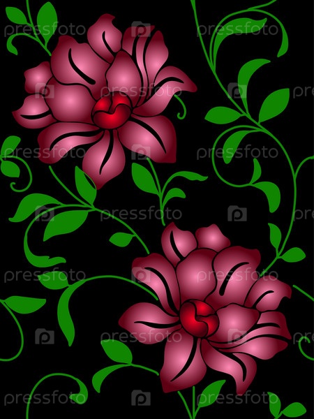 Черный фон с красными цветами