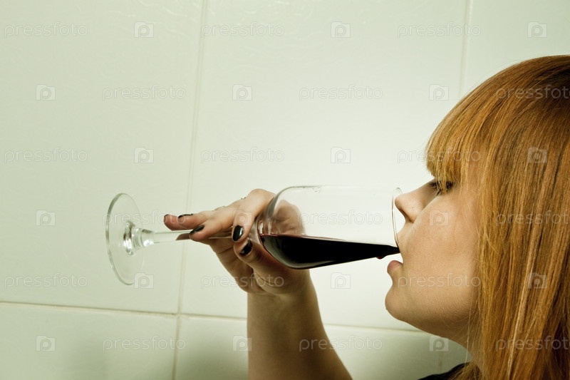Девушка пьет вино