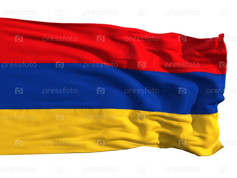 Флаг Армении, развевающийся на ветру, изолирован на белом фоне