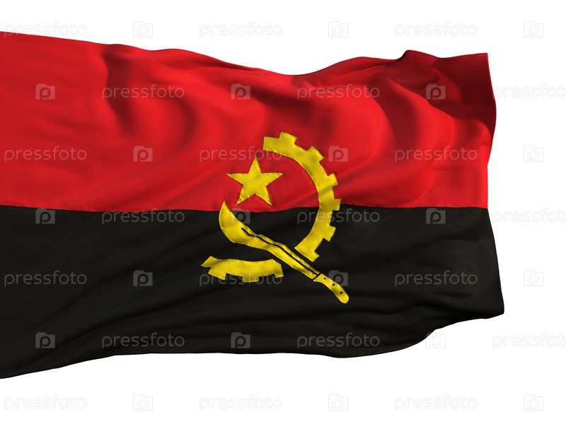 Флаг Анголы, развевающийся на ветру, изолирован на белом фоне