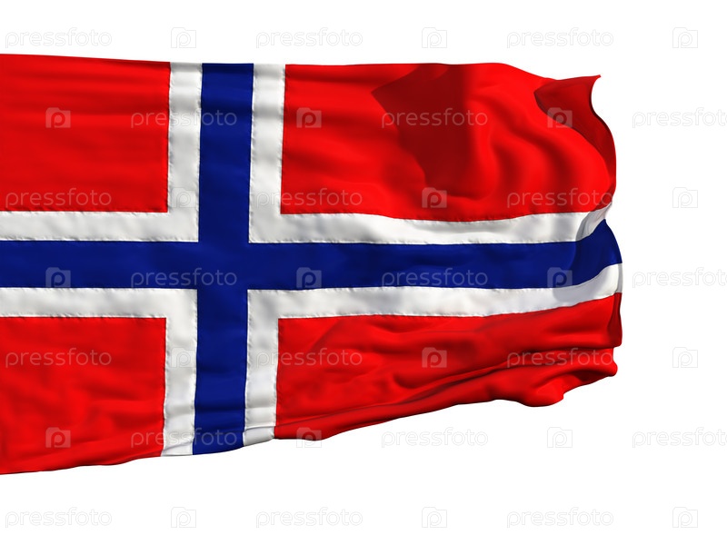 Флаг Норвегии, развевающийся на ветру, изолирован на белом фоне