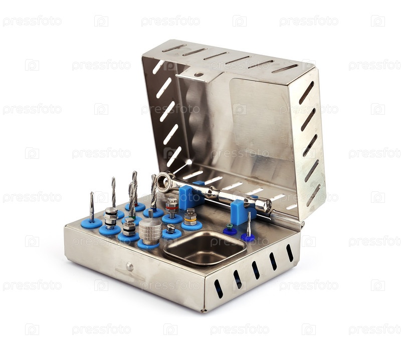 Инструменты для дентальной имплантологии на белом фоне