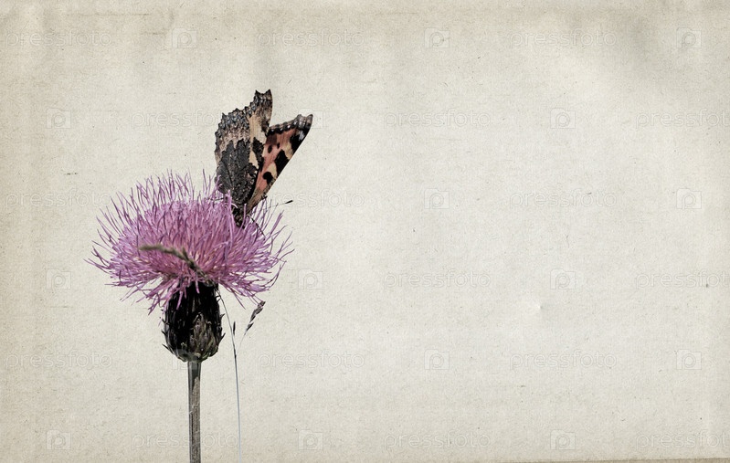 Винтажный фон с цветком и бабочкой