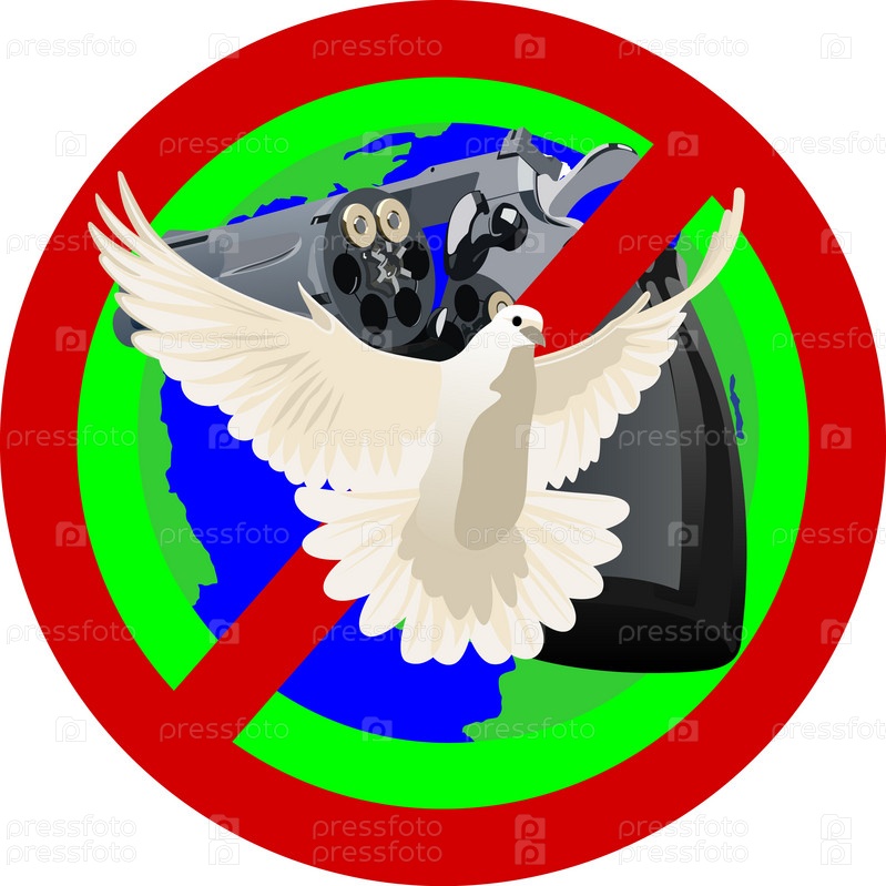 Белый голубь на фоне знака, запрещающего убийства, иллюстрация на белом фоне