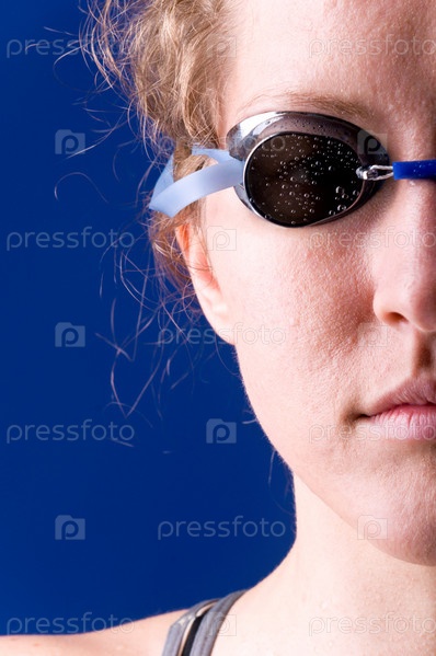 Лицо женщины в плавательных очках крупным планом