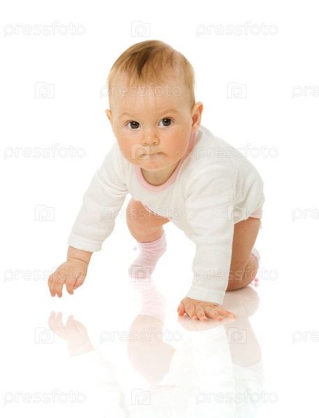 Очаровательная шестимесячная девочка, изолированная на белом фоне
