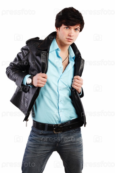 Портрет красивого молодого человека в кожаной куртке