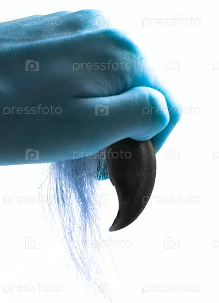 Коготь в руке мифического существа, на белом фоне