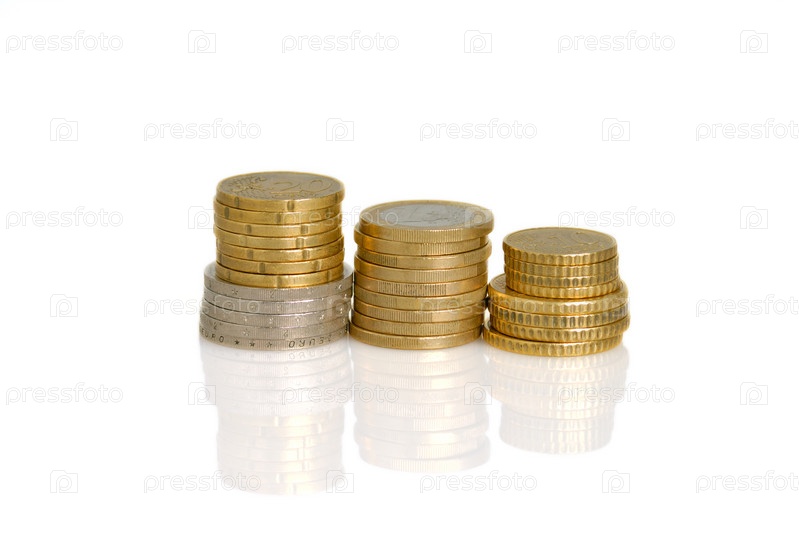 Монеты евро, изолированные на белом фоне