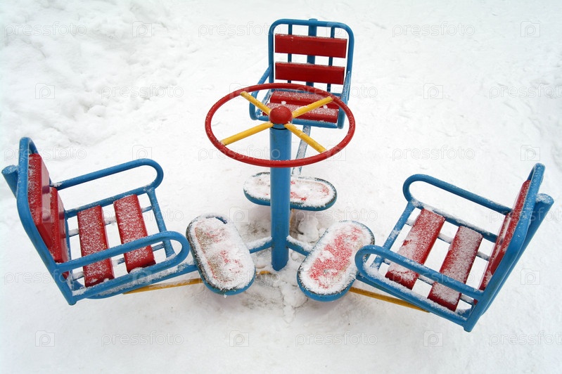 Детская карусель в зимнем парке