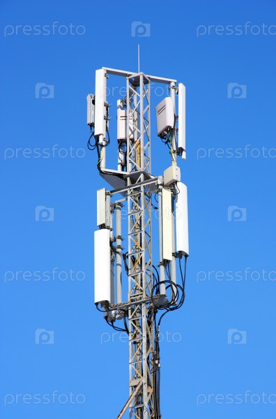 Антенна мобильной связи на фоне голубого неба