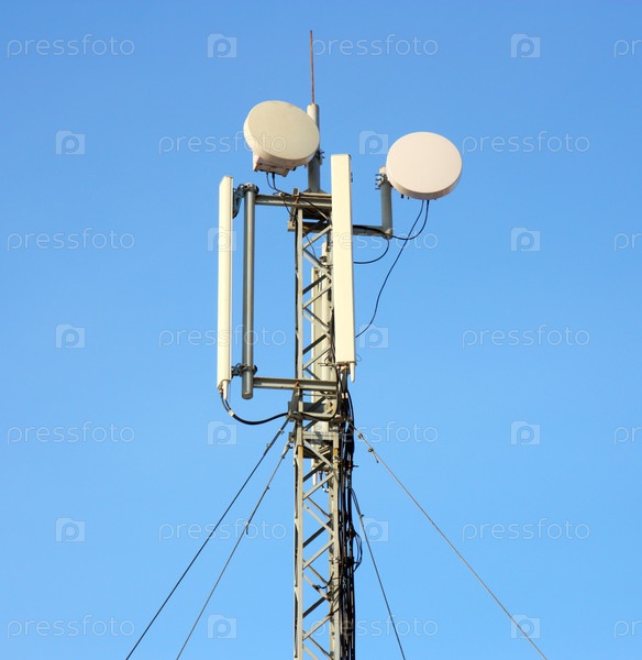 Антенна мобильной связи на фоне голубого неба