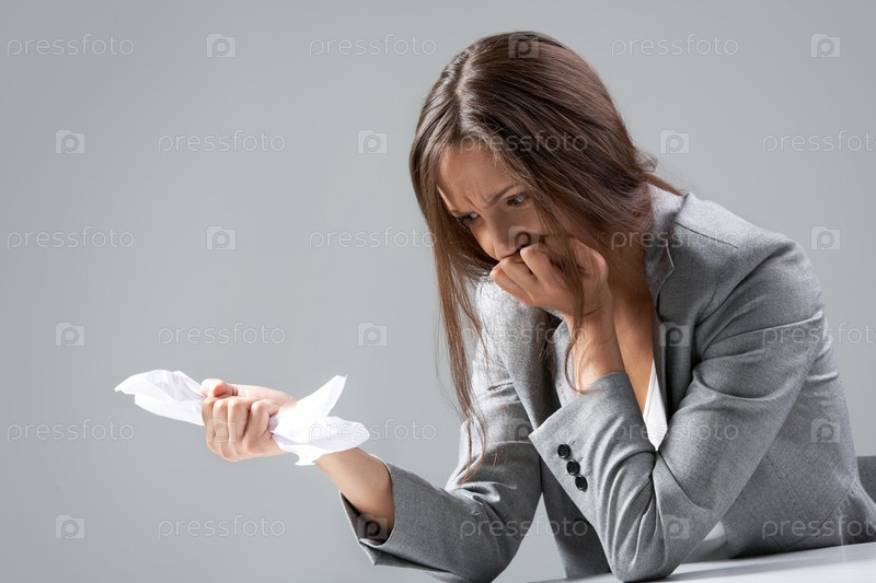 Портрет деловой женщины, сжимающей в отчаянии документ