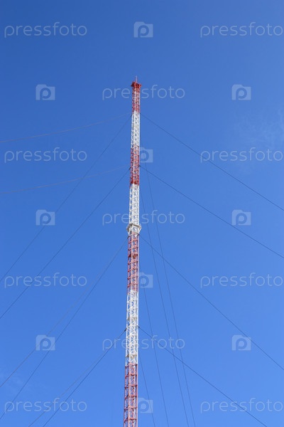 Телевизионная башня, находящаяся в стадии строительства на фоне чистого синего неба