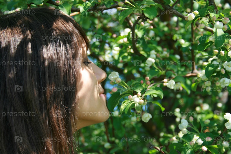 Девушка нюхает цветы