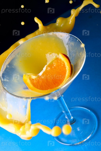 Брызги, летящие из бокала с коктейлем