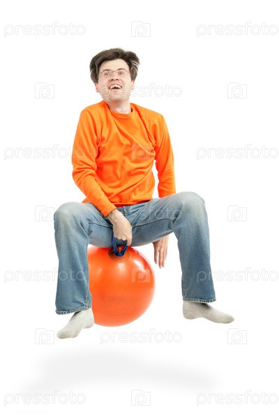 Радостный мужчина сидит на шаре