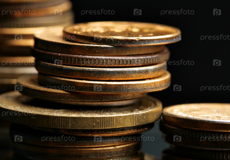 Монеты крупным планом на черном фоне