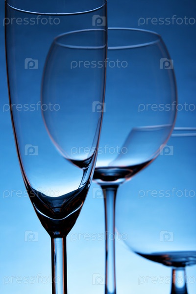 Натюрморт с пустыми фужерами на синем фоне