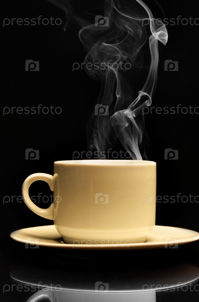 Кружка горячего кофе на черном фоне