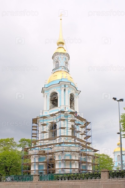 Востановленная церковь на набережной. Санкт-Петербург, Россия