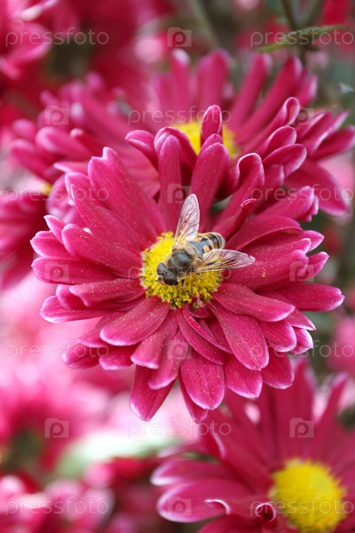 Пчела на фиолетовой хризантеме крупным планом