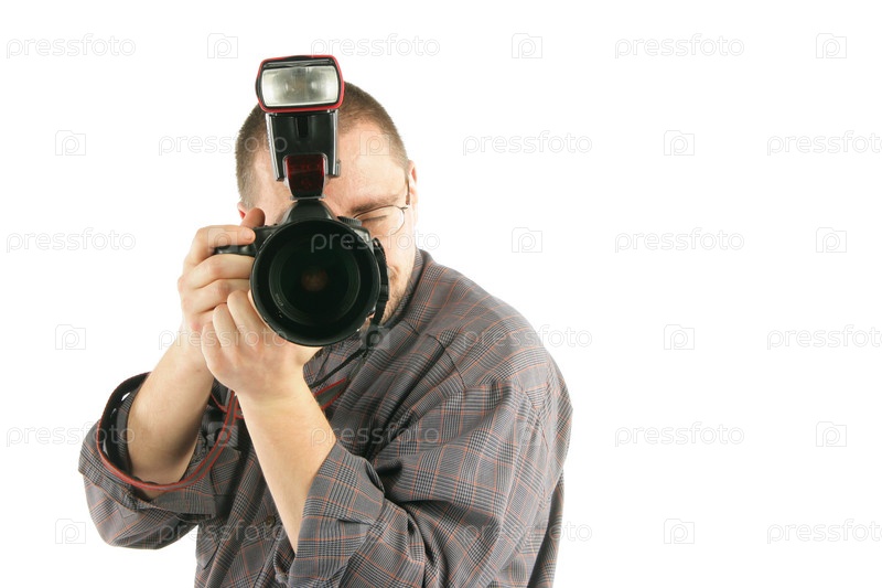 Фотограф делает фото, изолированный на белом фоне