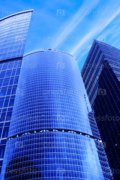 Современные небоскребы на фоне голубого неба