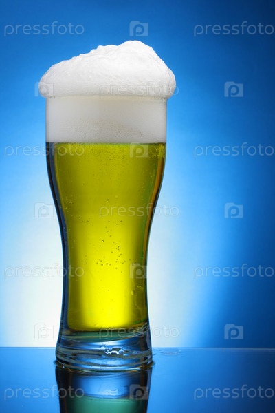 Бокал пива на синем фоне