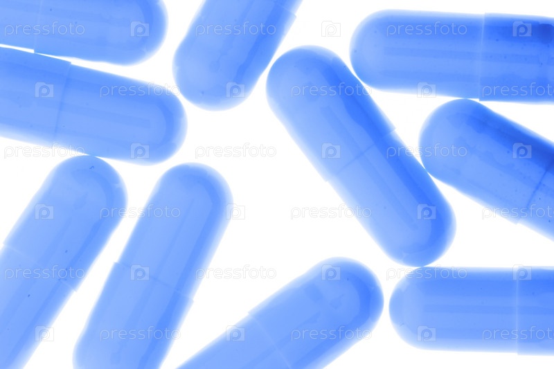 Голубые таблетки на белом фоне