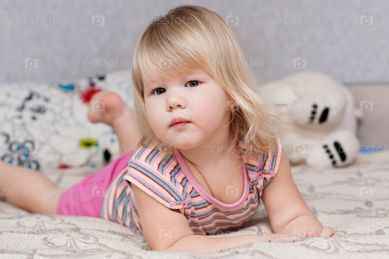 Девочка лежит на постели