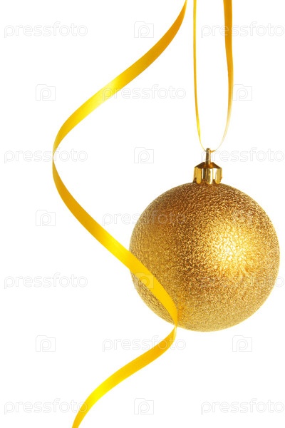 Золотой новогодний шар на белом фоне