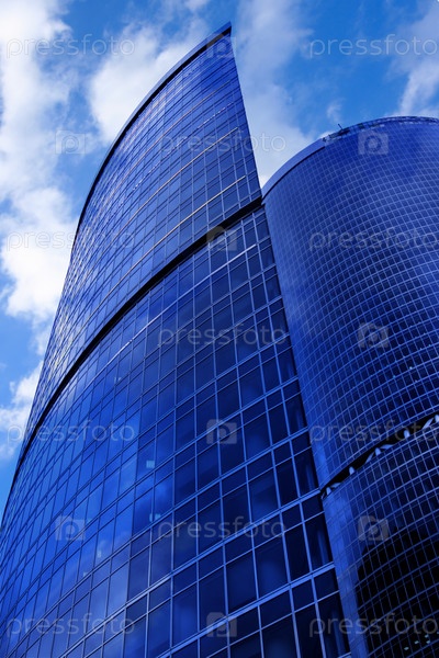 Современные небоскребы на фоне облачного неба