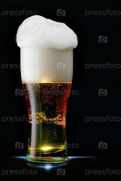 Полный стакан пива на черном фоне
