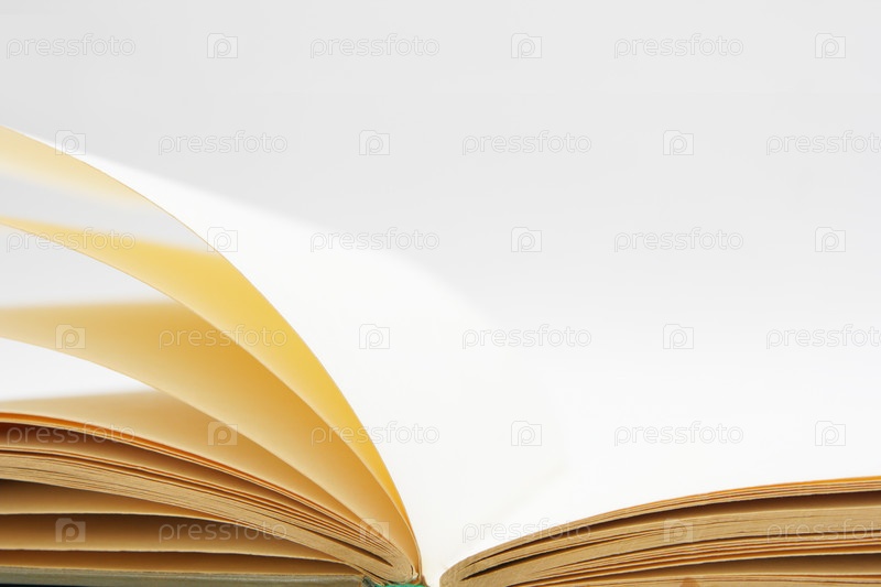 Раскрытая книга крупным планом на светлом фоне