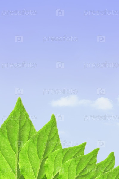 Зеленые листья на фоне неба
