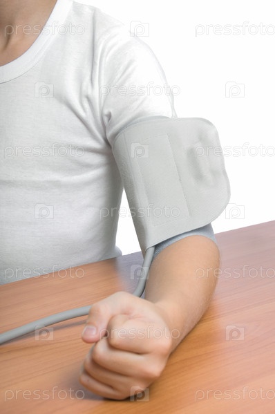 Пациент измеряет артериальное давление, изолированное над белым