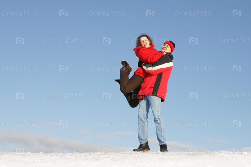 Молодая пара на открытом воздухе зимой