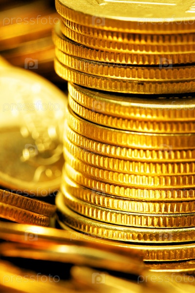 Золотые денежные монеты крупным планом