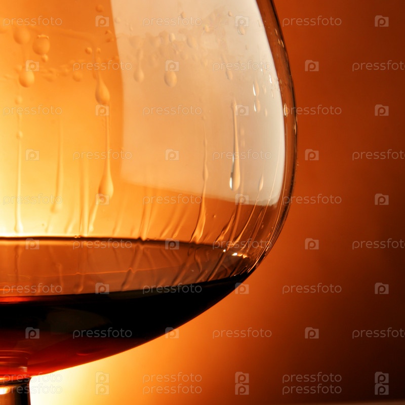 Бокал коньяка на коричневом фоне