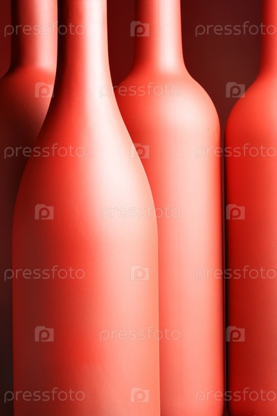 Красные винные бутылки на бордовом фоне