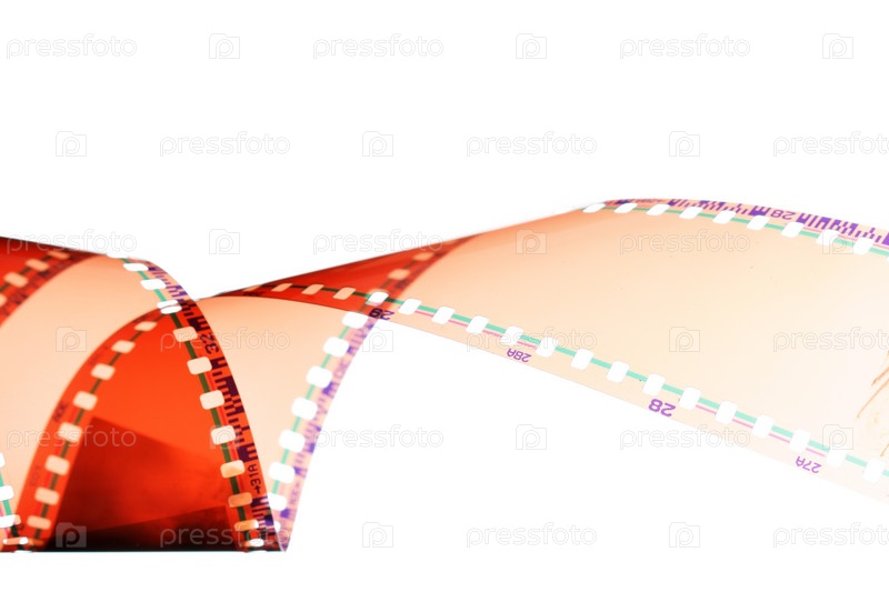 Проявленная 35-миллиметровая пленка на белом фоне