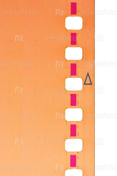 Часть 35-миллиметровой оранжевой пленки на белом фоне