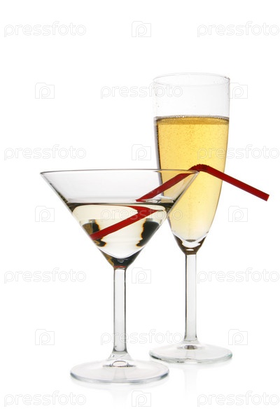 Шампанское и мартини на белом фоне