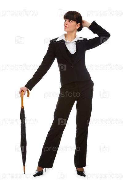 Портрет девушки в черном костюме с зонтом-тростью
