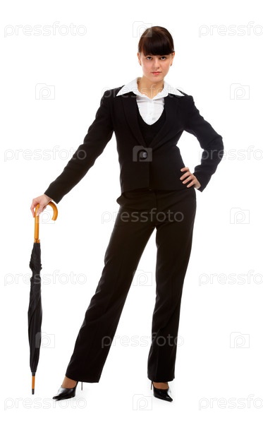 Портрет девушки в черном костюме с зонтом-тростью