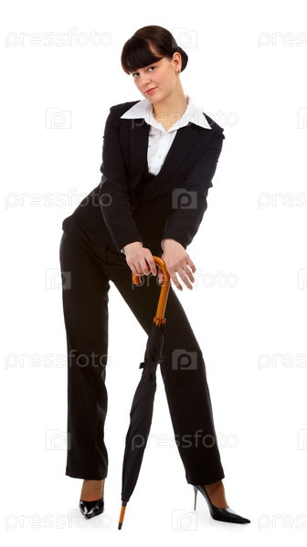 Портрет девушки в черном костюме с зонтом-тростью